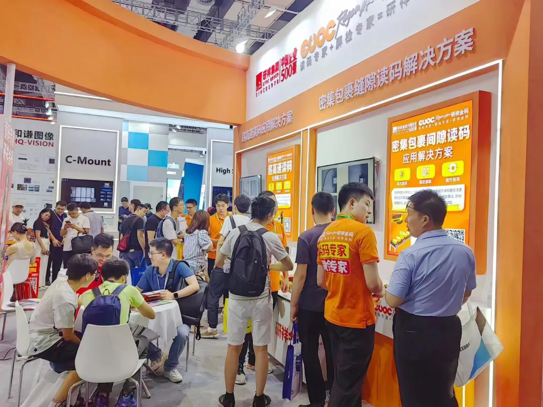 王牌产品的亮相,吸引客户纷纷驻足咨询。此次,yabo.comR-7000、R-6000、R-5000 、R-3000 、R-2000等系列智能读码器在现场悉数展出,以更快读码、更准解码、更广视野,刷新行业读码新认知。